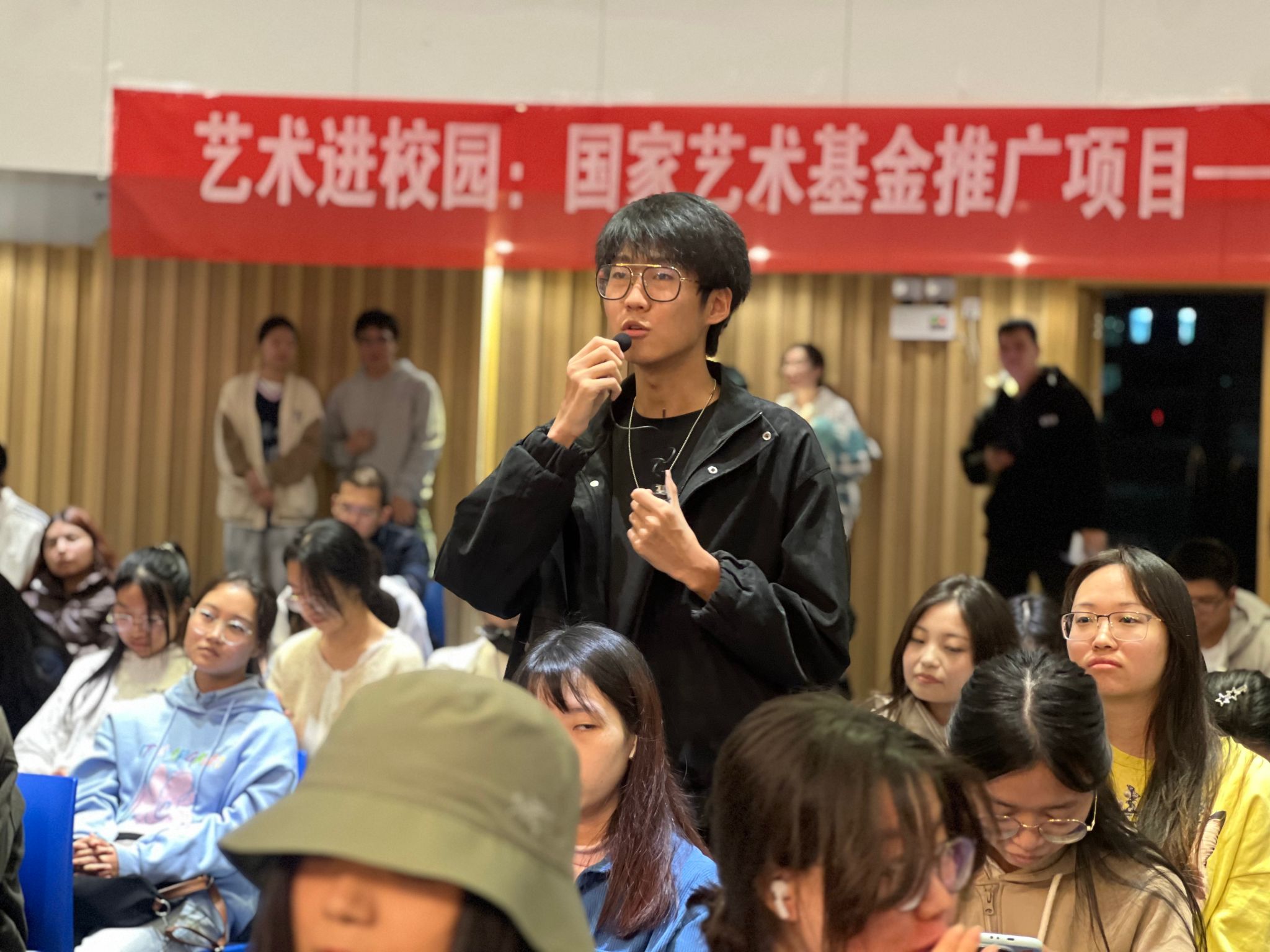 此外,艺术分享会还特别设置了互动环节,师生们有机会与主创团队面对面交流。同学们纷纷提问,从剧本改编、角色塑造到台词设计,主创团队都耐心解答,现场气氛热烈而融洽。许多同学表示,通过此次活动,他们对话剧艺术有了更深入的了解,也对文学艺术产生了浓厚的兴趣。