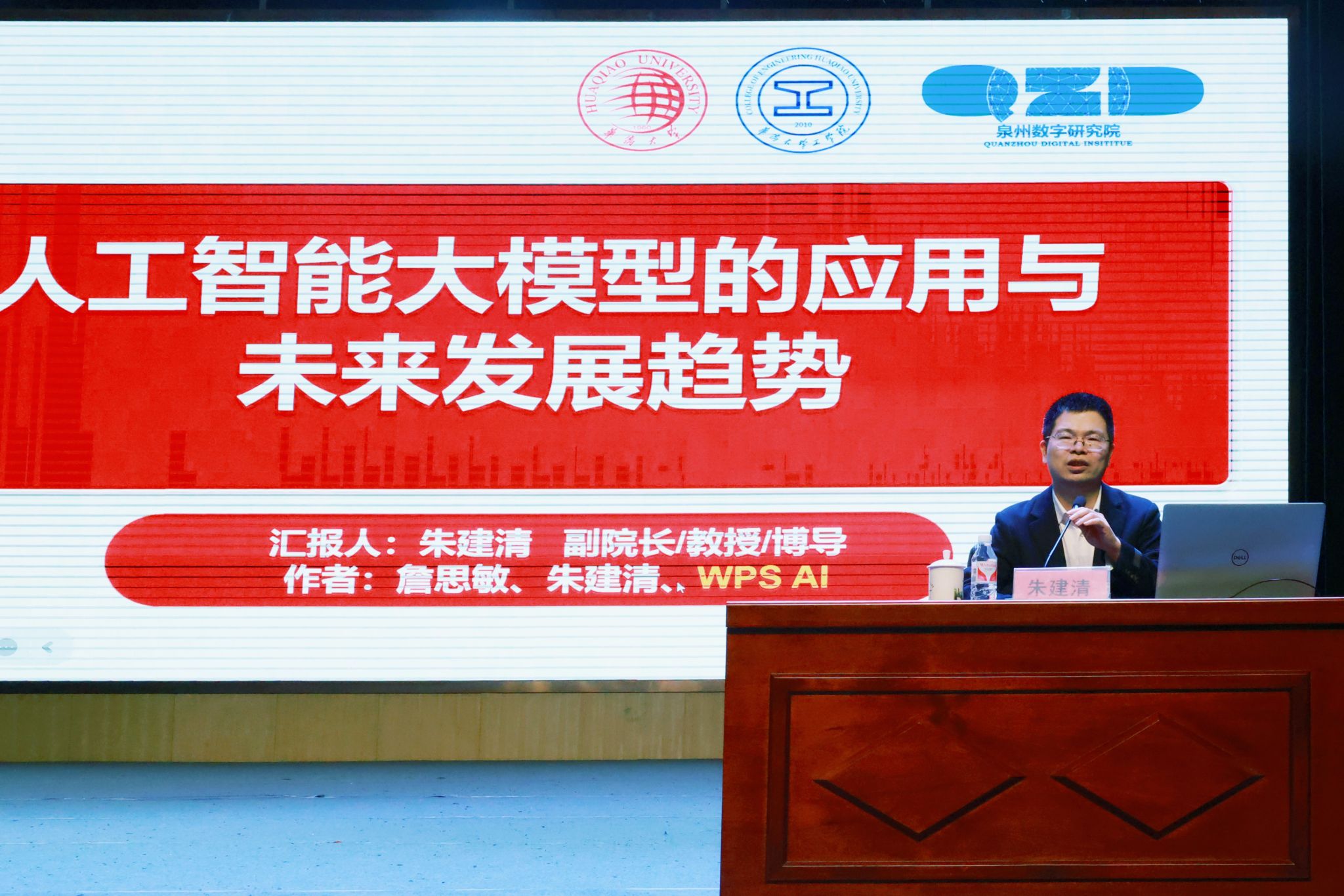 签约仪式后,永利304官网唯一朱建清教授在泉州第五中学作题为《人工智能大模型的应用与未来发展趋势》的专题讲座,以ChatGPT、DeepSeek等大模型为例,解析人工智能的核心原理及其教育应用场景。