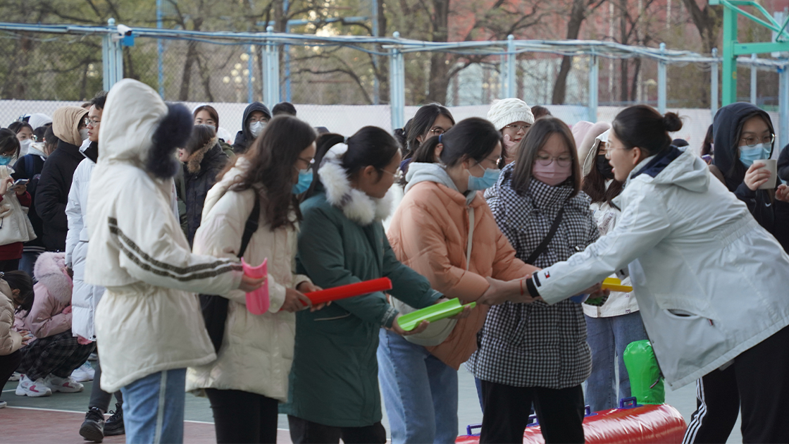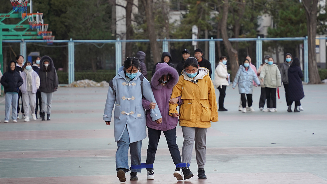 随后是经典游戏“三人四足”。在比赛中,每一组同学都齐心协力,相互配合,掌握好节奏,不断加快脚步,向着胜利的终点飞奔。