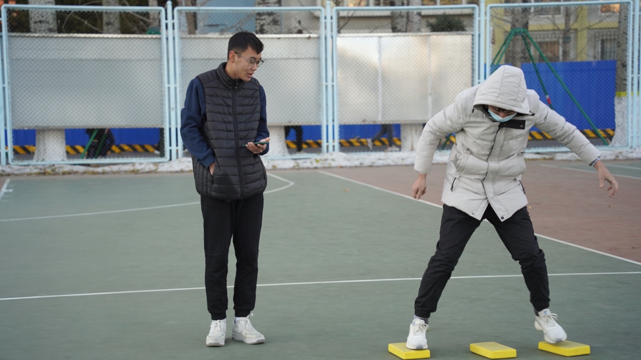 “摸石头过河”考验同学们的平衡、反应能力。活动中,同学们手脚并用,在一次次的摇晃中逐渐找到方法,稳住重心,渐入佳境。