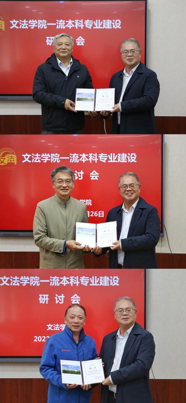 在此次研讨会上,学院为新聘请的教学督导赵雨、姚琳、何晓前三位老师举行聘任仪式,进一步增强了学院教学督导的力量,强化了对学院教学工作进行经常性的督导和检查。学院教学督导老师们纷纷表示要在未来发展中多为学院建言献策,做好教学质量评价、教学运行监督检查、教学信息反馈、交流指导等工作,推动学院教学质量的稳步提升。同时,教学督导老师们也就国家一流本科专业建设与学院老师们进行了深入交流,提出了诸多建设性意见。