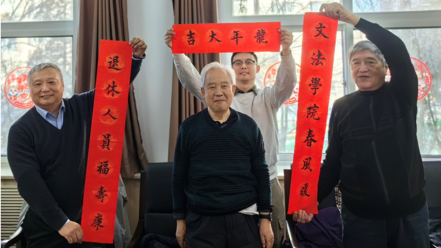 随后,柏士兴老师向学院赠送手写春联一副,并表示:“学院给予了我们这些老同志很多的关心与关爱,希望通过这小小的春联将自己的祝愿与感谢传递到各位老师心中,也祝大家龙年大吉。”