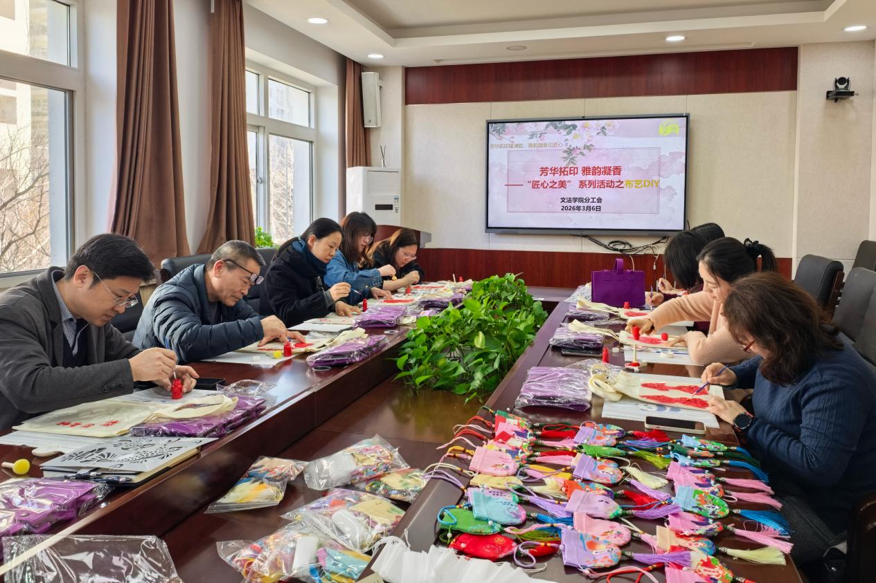 春和景明,文韵流芳。在第116个“三八”国际妇女节到来之际,文法学院分工会于2026年3月6日在文法楼210举办“芳华拓印·雅韵凝香——匠心之美系列活动之布艺DIY”妇女节主题创意活动。活动以“感受手作之美、涵养人文雅韵”为主线,通过体验布艺DIY创作,让教师们在实践中放松身心、陶冶情操,进一步增强归属感、幸福感和凝聚力,充分展现新时代高校教师积极向上的精神风貌。