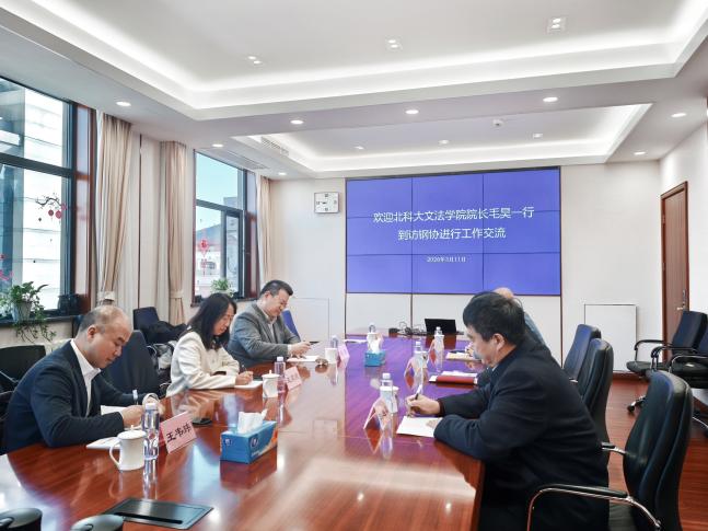 为深入落实学校“面向二〇三五世界一流大学‘钢铁脊梁’奋进计划”工作部署,深化产教融合发展战略,精准对接钢铁行业法治人才需求与面向产业发展的科研实践 3月11日,文法学院赴中国钢铁工业协会法律分会(以下简称“钢协”)开展工作交流。双方围绕法治人才培养、产学研协同创新、行业法律服务等核心议题深入研讨,共谋未来合作发展共识,为钢铁行业高质量发展注入法治动能。