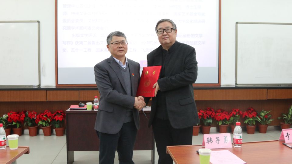 主持人介绍主讲嘉宾及校院领导后,副校长臧勇为韩子勇院长颁发《北京科技大学文化建设、传统金属工艺文化传承基地顾问聘书》。随后,讲座正式开始。