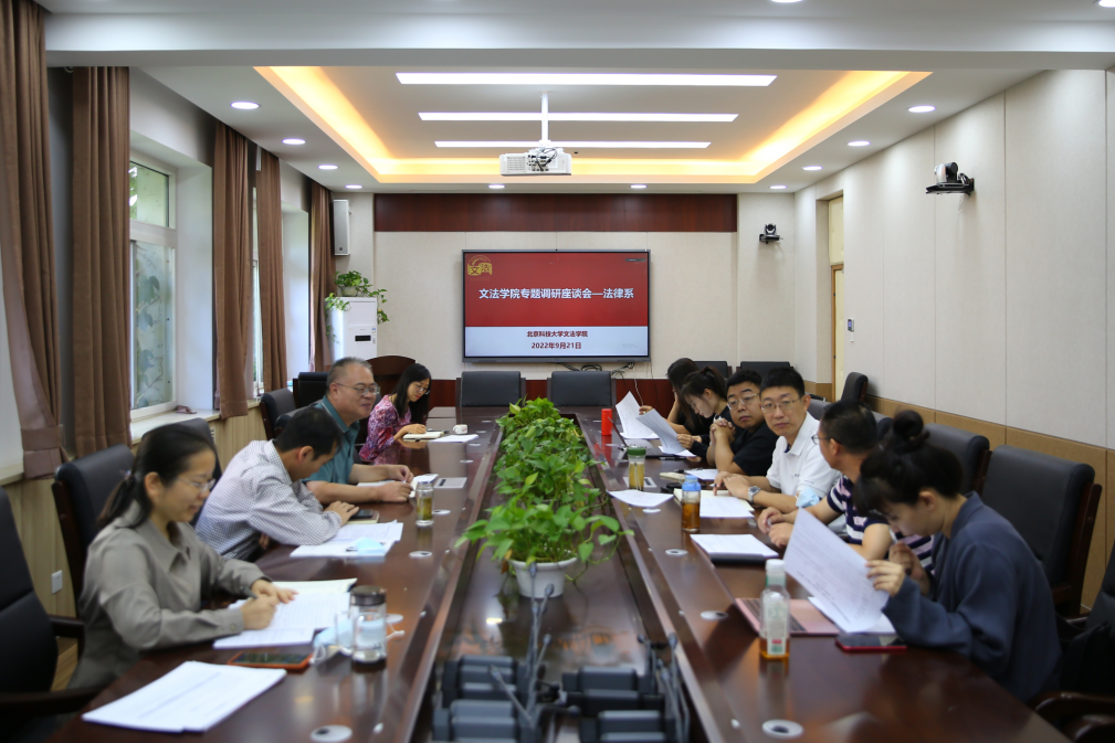 为深入了解学院各系所情况,广泛听取全体教师对涉及教师切身利益事项和学院建设发展等各方面工作的意见建议,2022年9月19日至22日,文法学院党委书记史立伟、常务副院长魏增产带领全体班子成员深入学院公共管理系、法律系、社会学系、教育经济与管理研究所、知识产权中心等机构,连续召开了5场专题调研座谈会,主要就文法学院教师专业技术职务任职条件修订方案广泛征询一线教师的意见和建议,同时就各系所在学科发展中遇到的困难和问题进行深入交流,对班子成员的工作提出意见建议,各系所全体教师参加了座谈会。