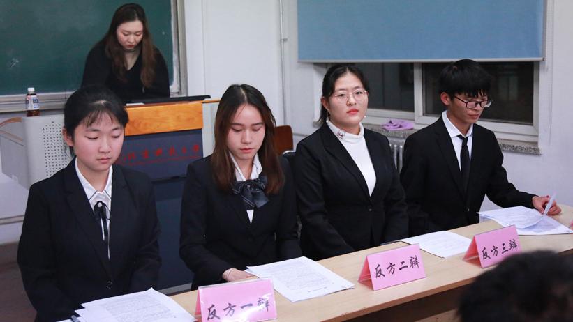 开篇立论环节,正反双方辩手陈述条理清晰,金句频出,阐释己方观点,解释论题内涵。既体现了文法学子出色的思维能力,也展示了北科求实鼎新的校训精神。