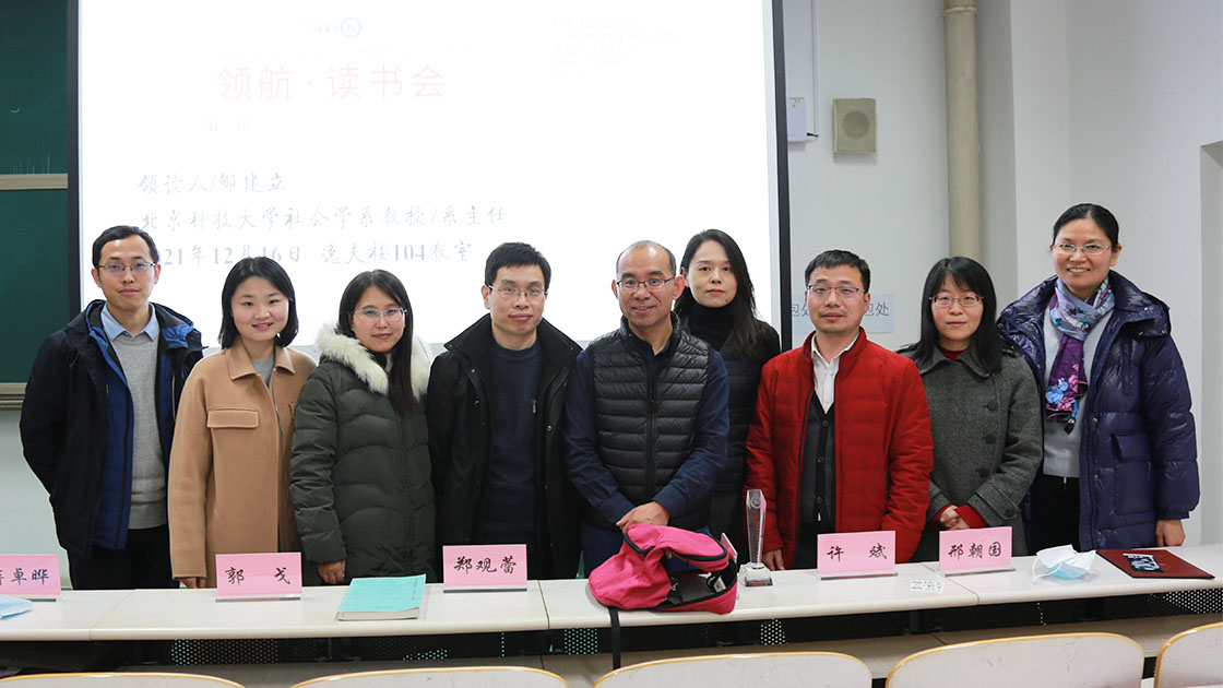 2021年12月16日下午,文法学院“领航·读书会”第二场活动在逸夫楼104教室顺利举办。本场读书会由文法学院社会学系主任、教授、博士生导师郇建立老师领读,文法学院副院长许斌,社会学系教师党支部书记邢朝国,社会学系寇浩宁、蒋卓晔、李文静、郭戈、郑观蕾,学工办本科工作组组长、2018级本科生辅导员马昭文等老师出席本次活动。社会学系刘浩主持本场读书会。