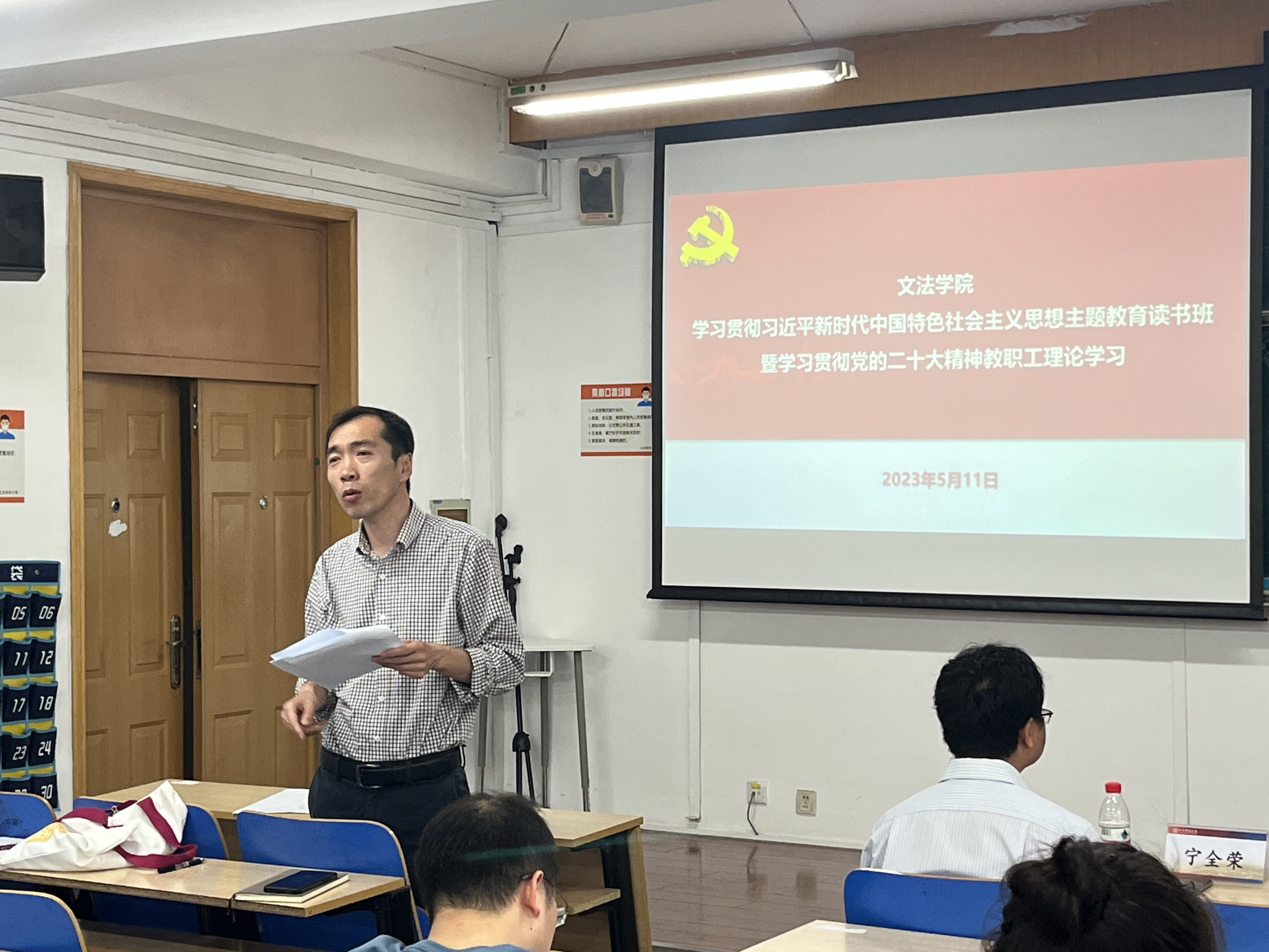 文法学院党委召开学习贯彻习近平新时代中国特色社会主义思想主题教育读书班暨学习贯彻党的二十大精神教职工理论学习