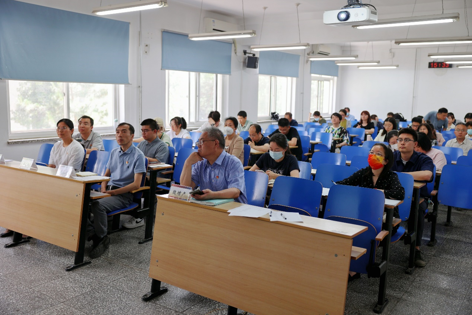 2023年6月1日,文法学院学习贯彻习近平新时代中国特色社会主义思想主题教育领学报告会暨全体教职工理论学习在文法楼301举办,文法学院副院长王霁霞、许斌分别围绕分管工作进行主题报告。